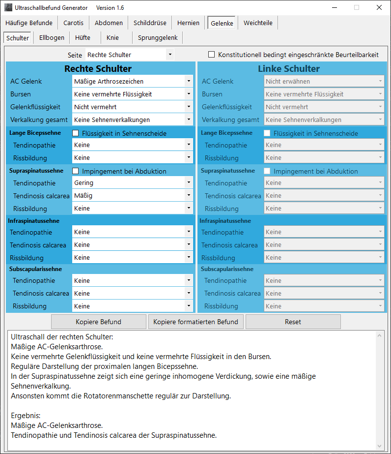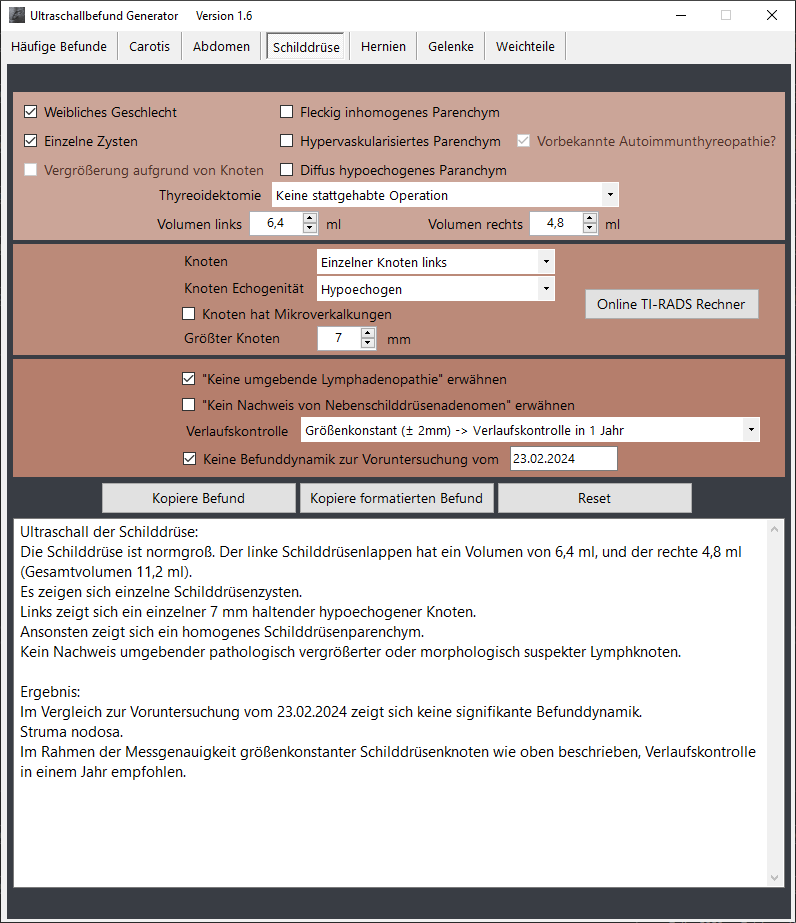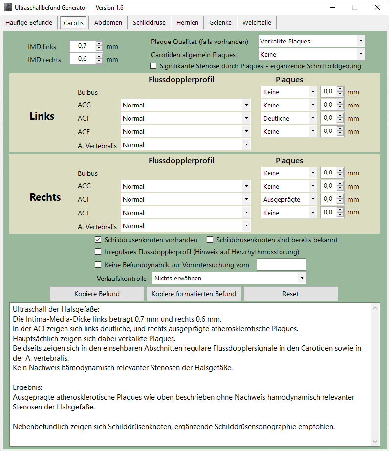 Der Ultraschallbefund Generator ist in ständiger Weiterentwicklung und seit der Erstellung wurden bereits zahlreiche sinnvolle Verbesserungen umgesetzt und die Funktionalität erweitert.